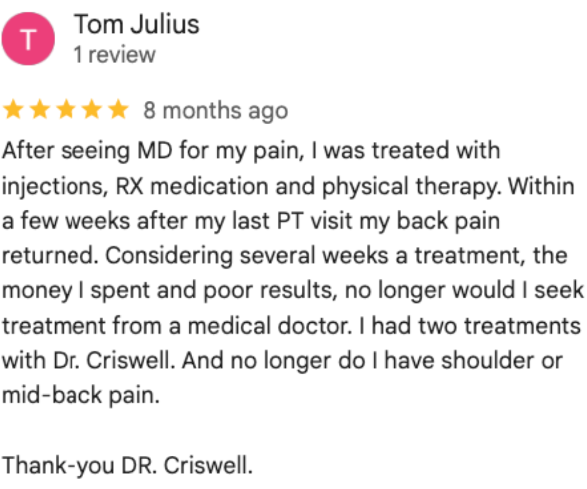 Dr. Curtis Criswell is giving away 30 vouchers for Health Assessment & Treatment Package for ONLY $47 (Normally $250!)